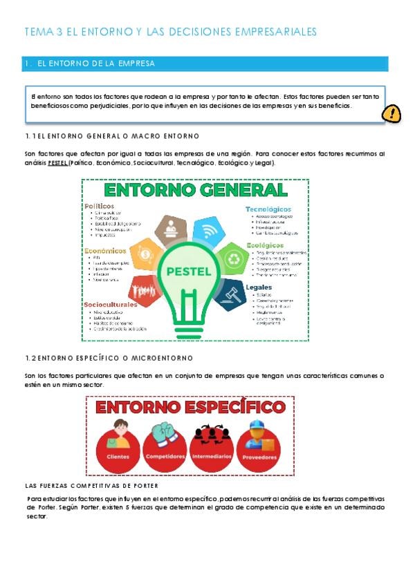 Apuntes Economía del tema 3: ENTORNO GENERAL Y ESPECÍFICO Y DIGITALIZACIÓN. Para la PAU