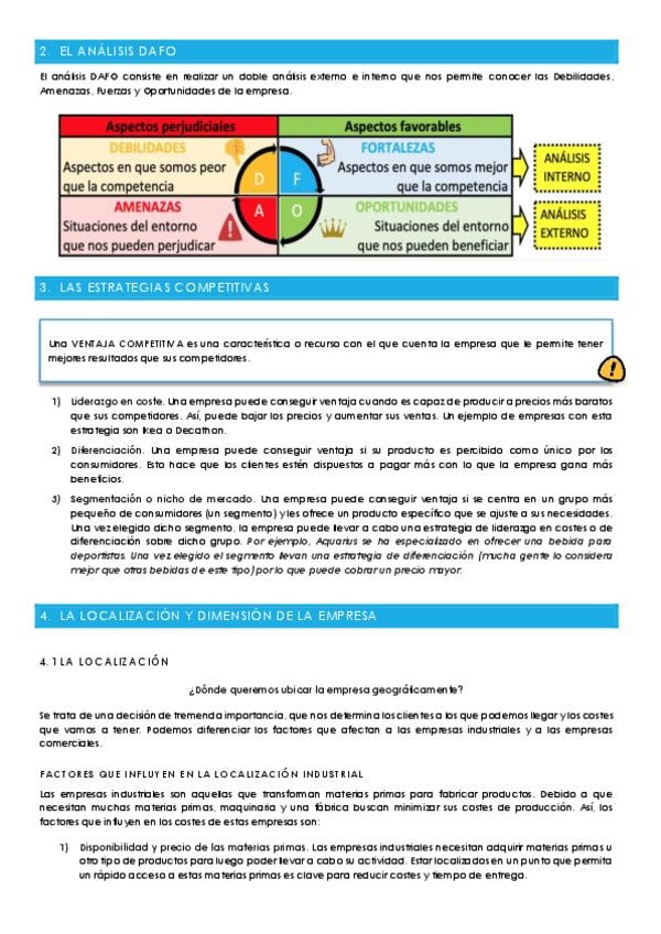 Tema 4 de Economía: LOCALIZACIÓN, DIMENSIÓN Y DESARROLLO EMPRESARIAL Para la PAU, con explicaciones de la parte práctica