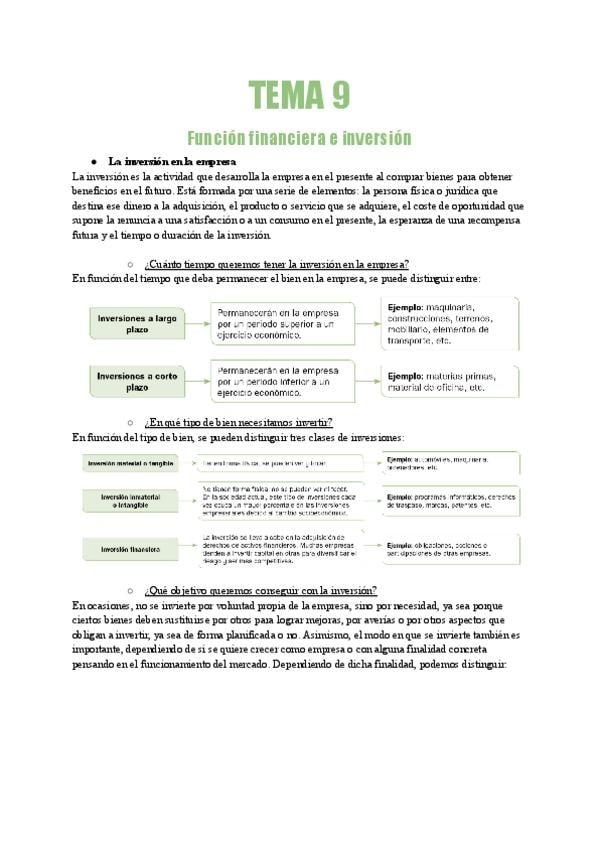 Resumen tema 7: funcion financiera e inversión.Asignatura Empresa y diseño de modelos de negocio, CV.