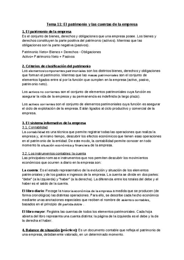 Apuntes del tema 9 de Economia de la Empresa: ESTADOS CONTABLES Para 2 de Bachillerato y para la PAU con la teoria explicada