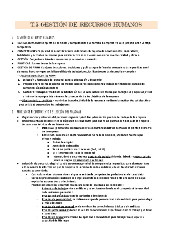 Tema 5 gestión de los recursos humanos