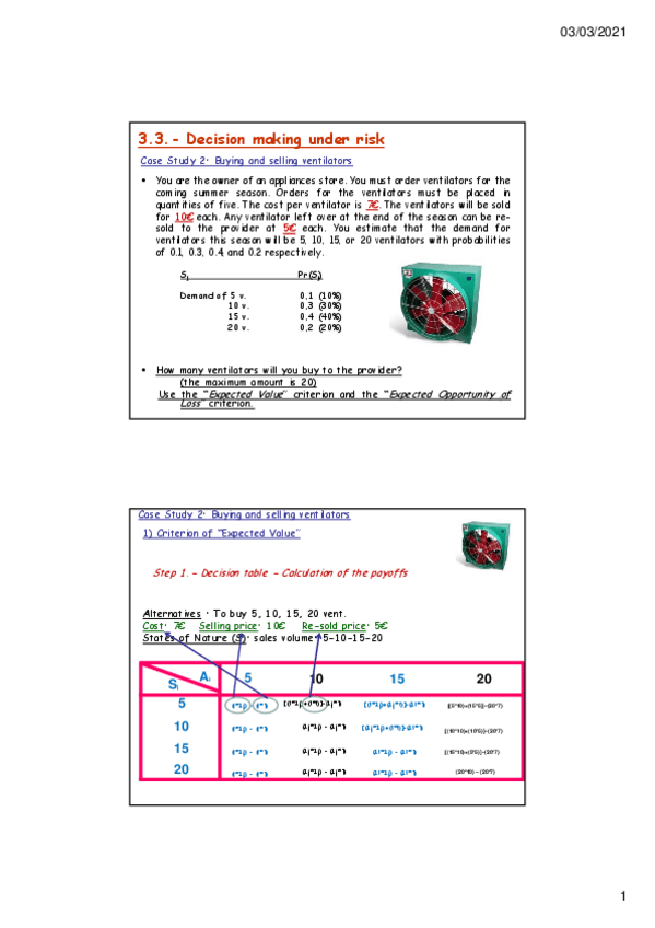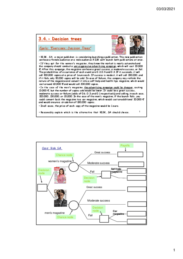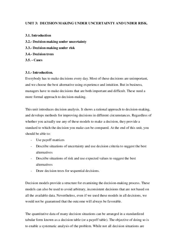 He publicado nuevos ejercicios de 1º Economía de la Empresa: Organización y Dirección: UNIT3Decmakingunderuncertainty.pdf