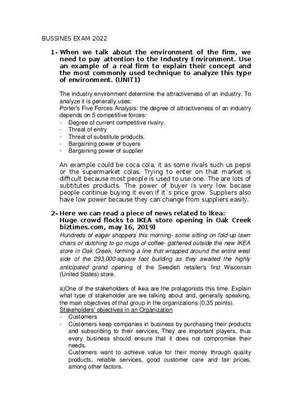 He publicado nuevos examenes de 1º Economía de la Empresa: Organización y Dirección: Examen-Bussines-2022 Sarriko.docx