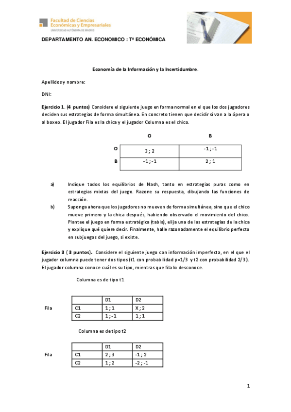 He publicado nuevos apuntes de 3º Economía de la Información y de la Incertidumbre: Ejercicios teoria de juegos.pdf