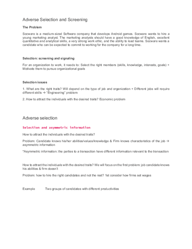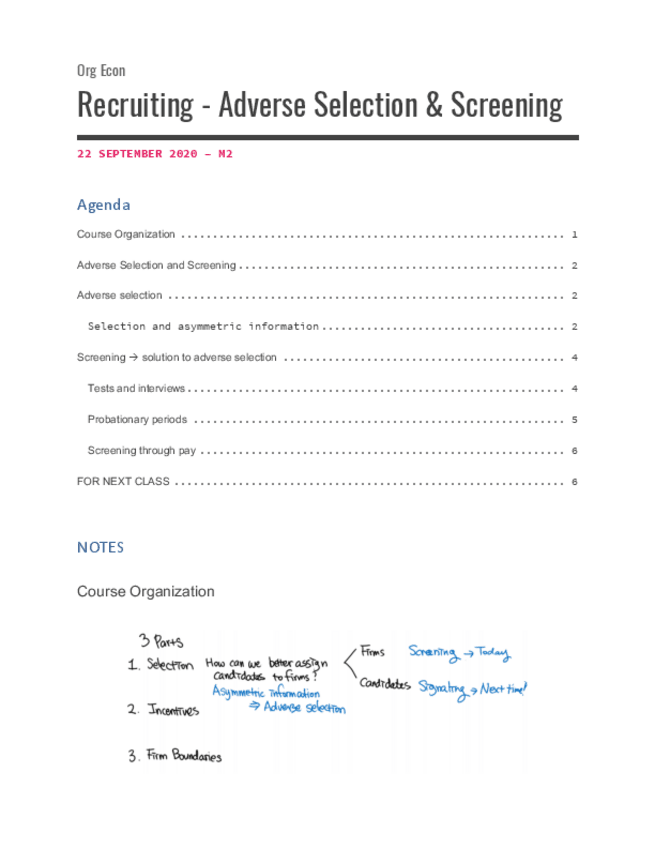 M2 Recruiting - Adverse Selection and Screening Economia organizaciones ade inglés uc3m