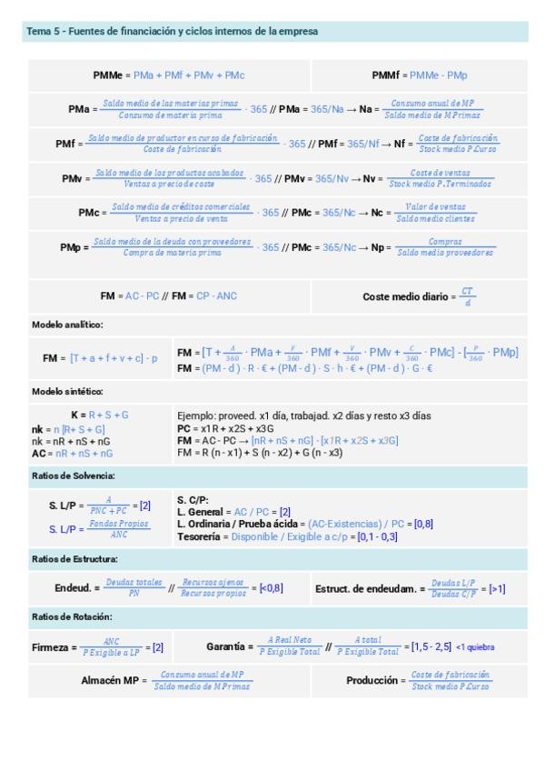 FÓRMULAS Y EJEMPLOS TEMA 5 FINAL ECO EMPRESA