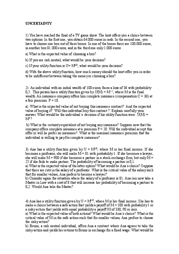 He publicado nuevos ejercicios de 2º Economia del Comportament: SetexercisesUNCERTAINTY.pdf