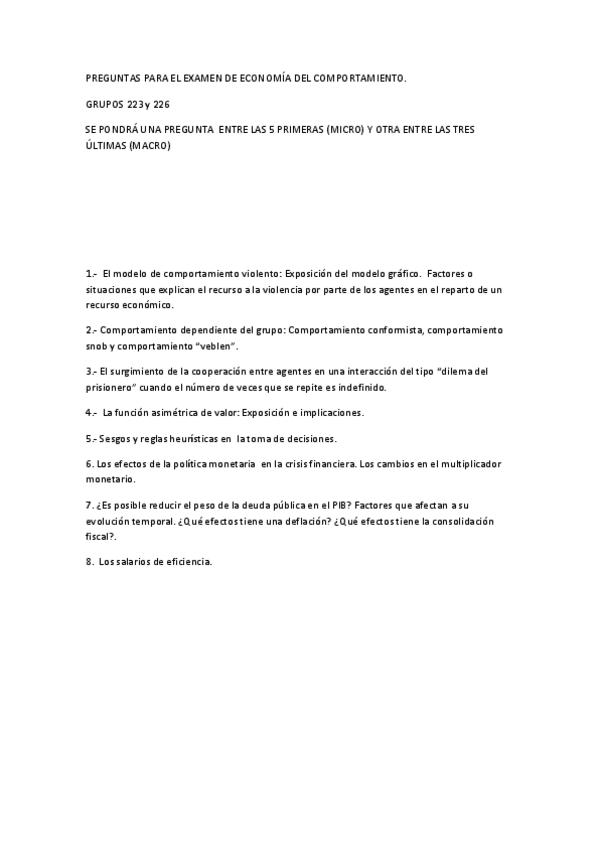 He publicado nuevos examenes de 2º Economía del Comportamiento: PREGUNTAS DE EXÁMEN
