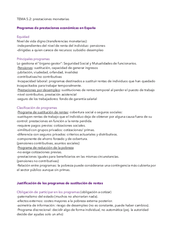 Adjunto mis apuntes de las transferencias en especie de Economía de Bienestar de 1 de Trabajo Social en el curso 2024-25