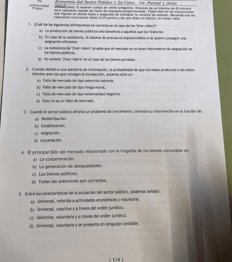 Examen 2 convocatoria (1er parcial) economía ULE