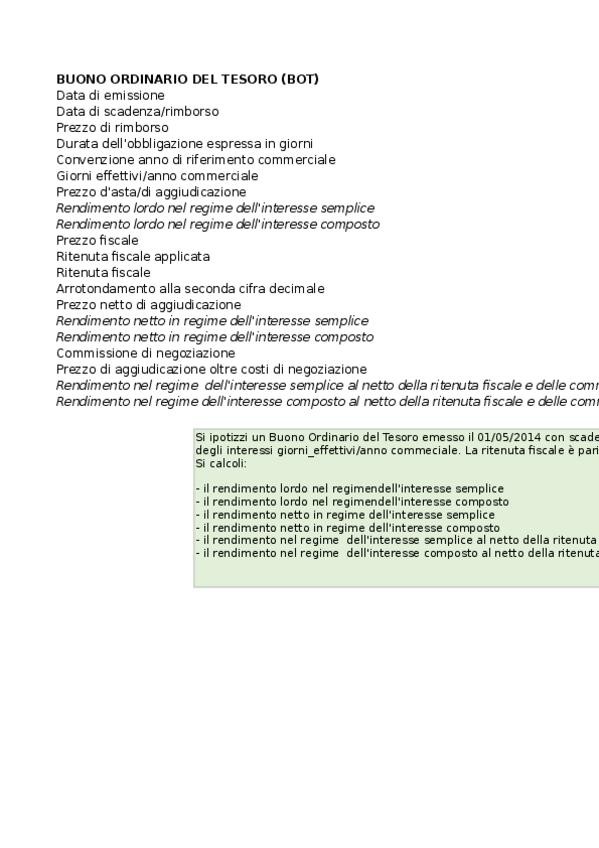 He publicado nuevos apuntes de 3º Economia e tecnica dei mercati mobiliari: Calcolo rendimenti azioni/obbligazioni