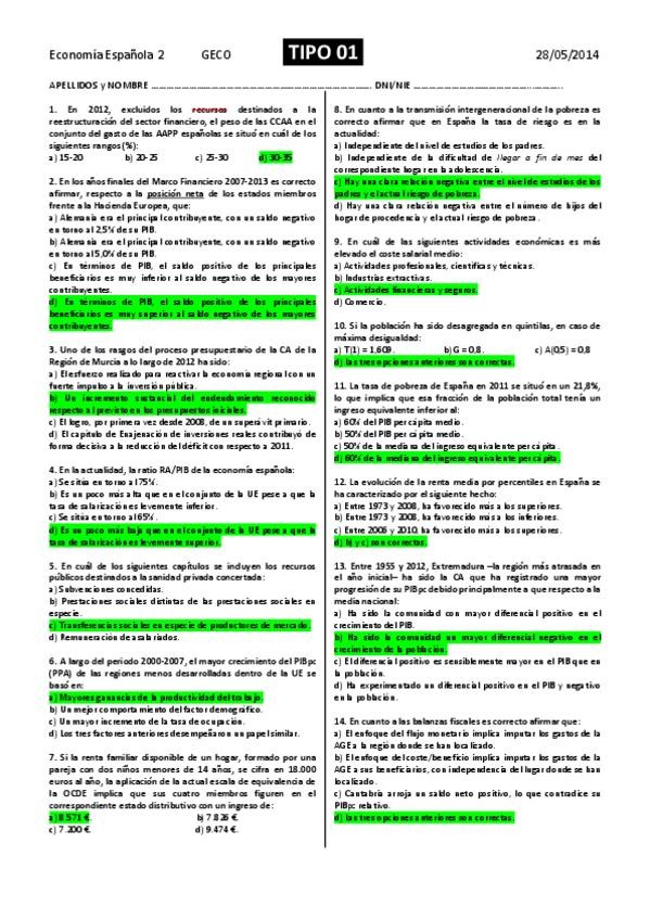 Exámenes Economía Española II