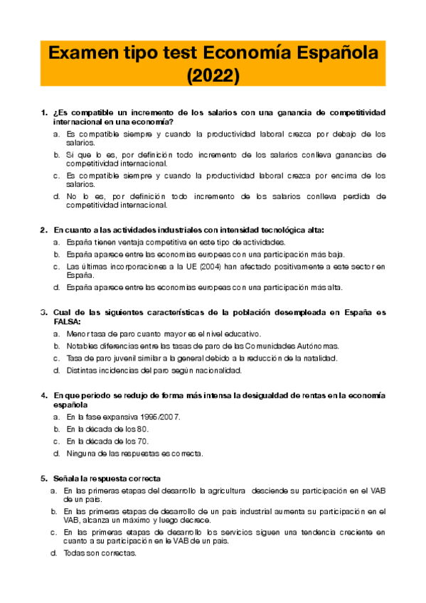 He publicado nuevos examenes de 2º Economía Española y Mundial: Examenes tipo test 2022