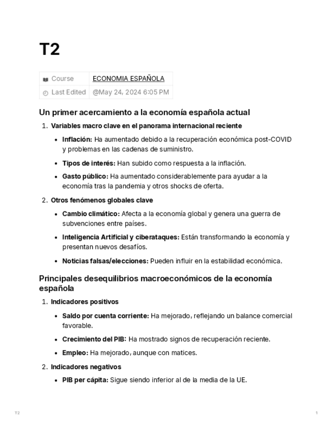 He publicado nuevos apuntes de 2º Economía Española: Temario completo
