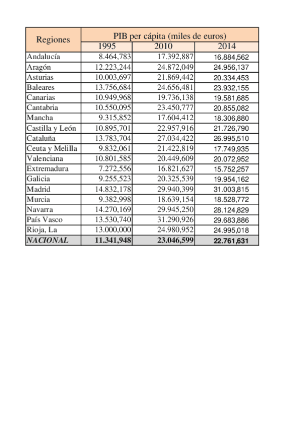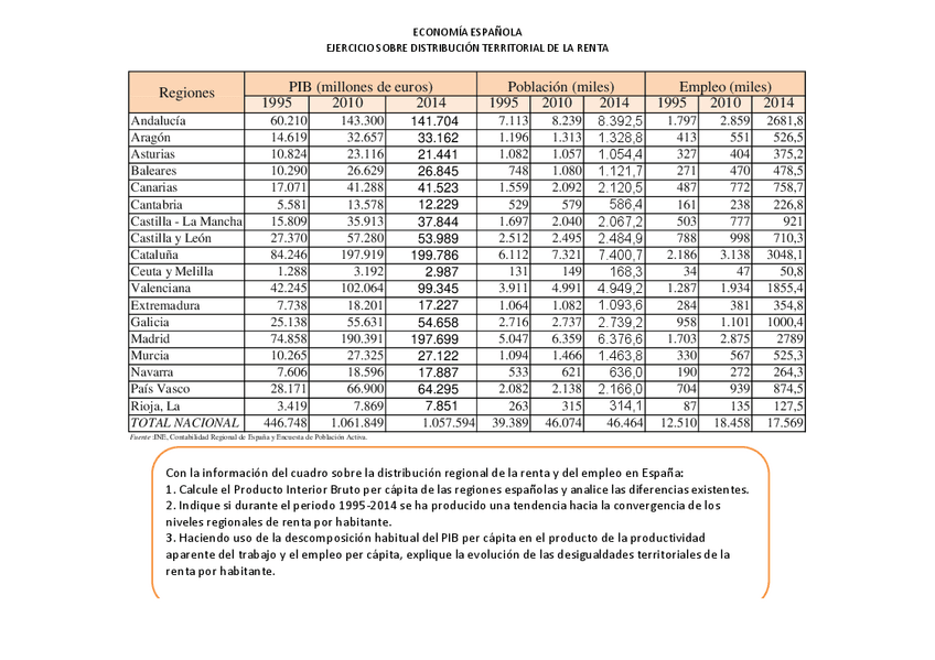 He publicado nuevos ejercicios de 2º Economía Española: PRACTICA DISTRIBUCION TERRITORIAL DE LA RENTA SOLUCIÓN