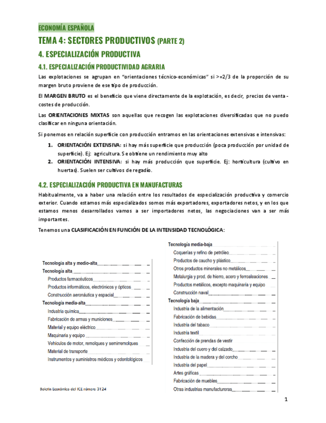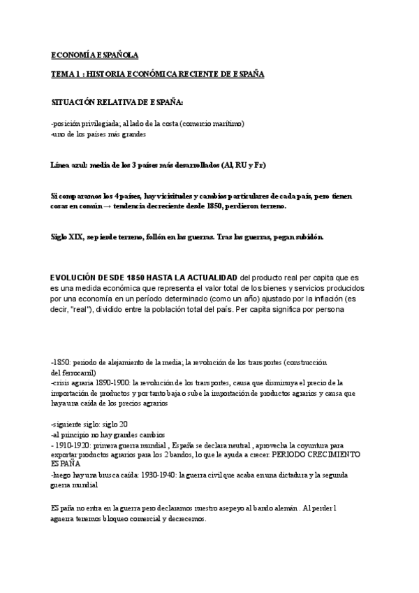 APUNTES ECONOMÍA ESPAÑOLA PRIMER PARCIAL