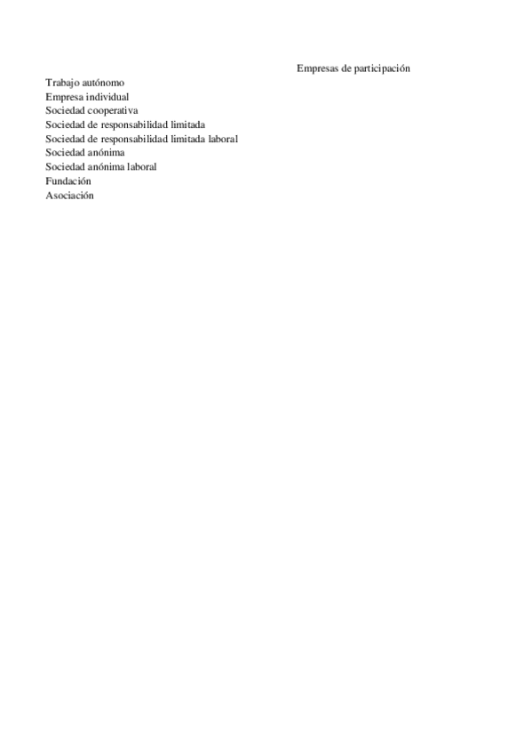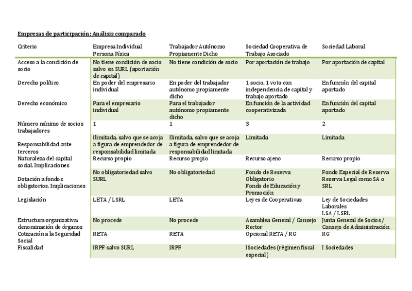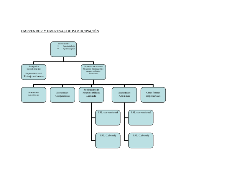 Tema 6. Aprender a emprender bajo formas de participación: empresa individual, trabajo autónomo, sociedades cooperativas de producción (trabajo asociado) y sociedades laborales. Un análisis comparado