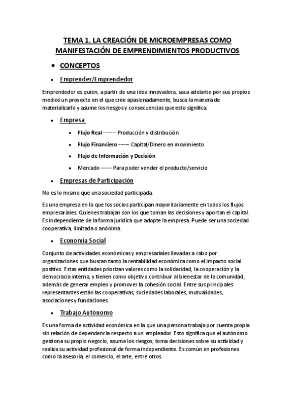 Tema 1. La creación de microempresas como manifestación de emprendimientos productivos