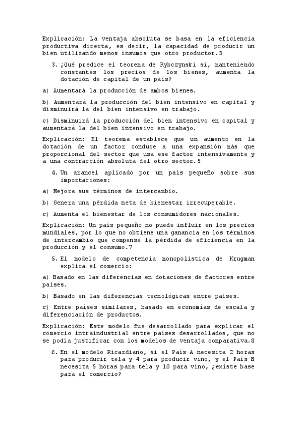 preguntas resueltas teoría estándar del comercio internacional