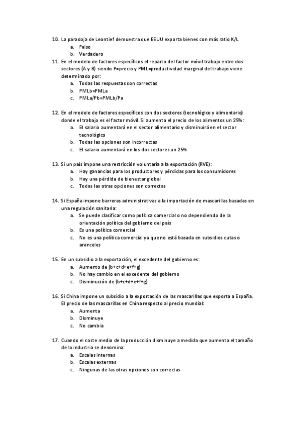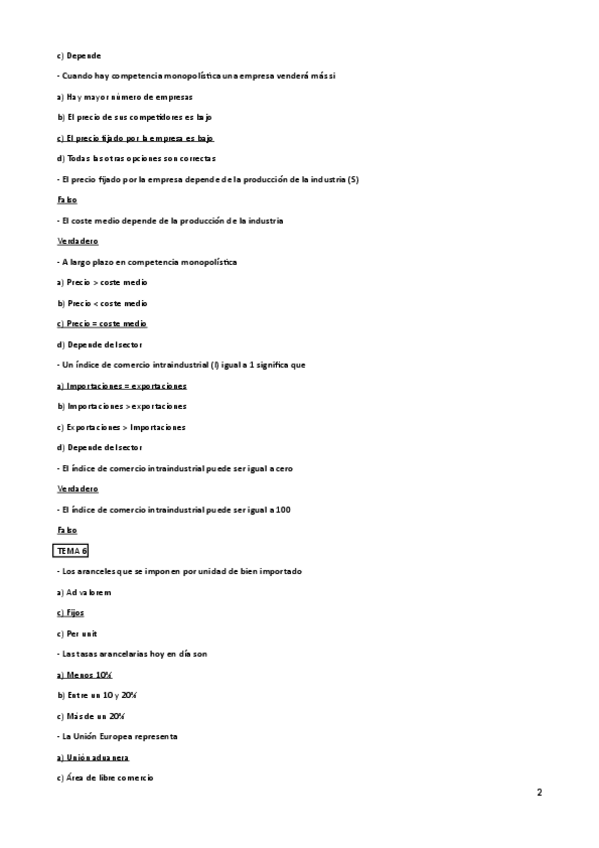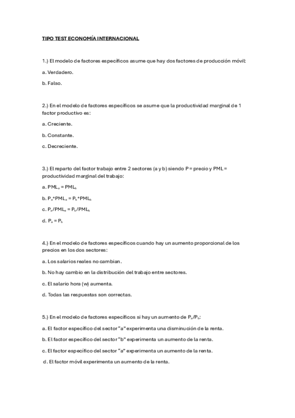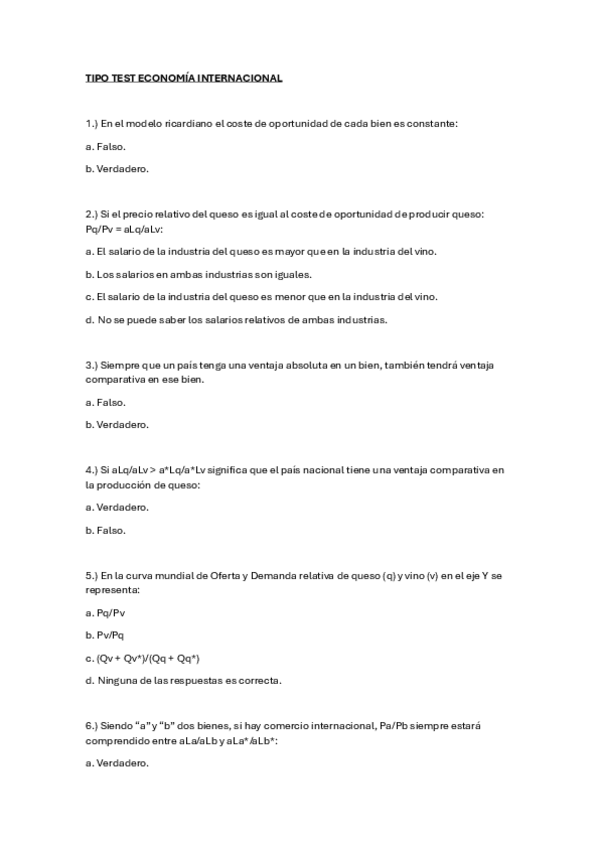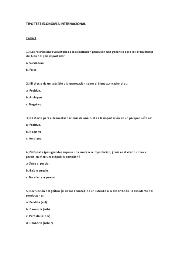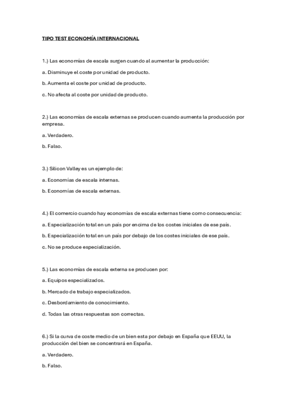 Tipo test Economía Internacional