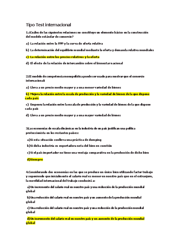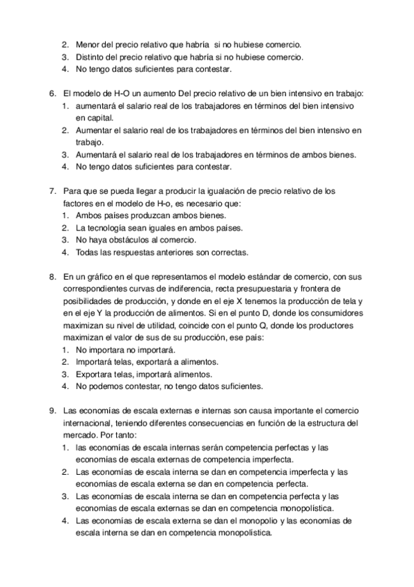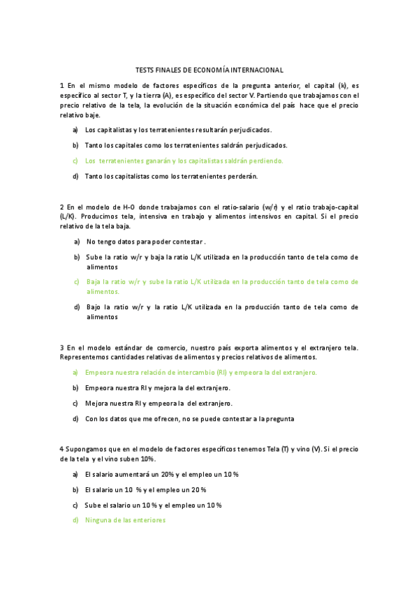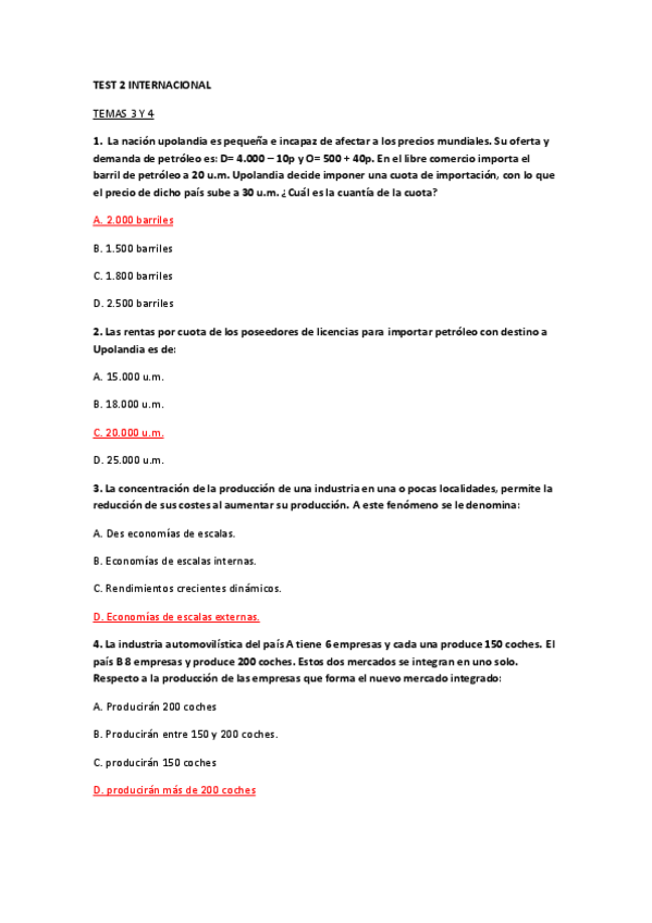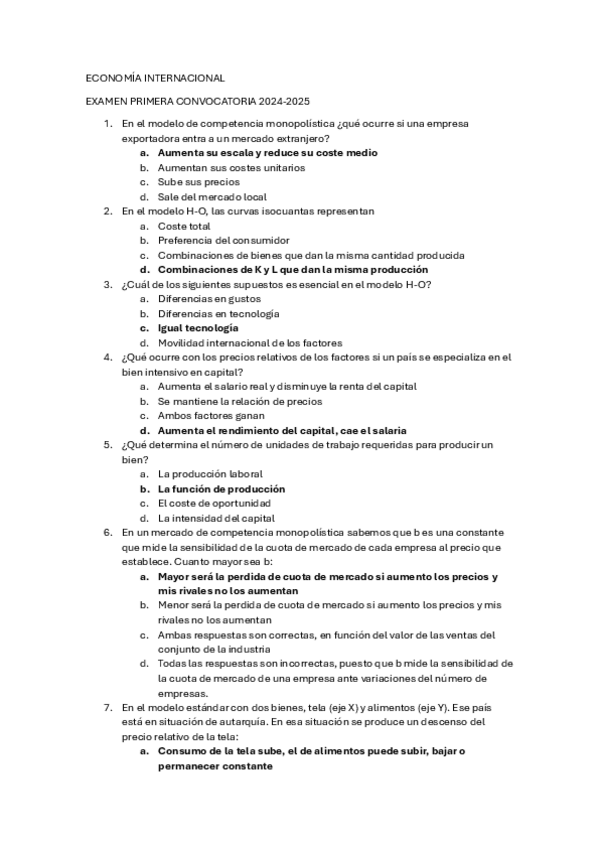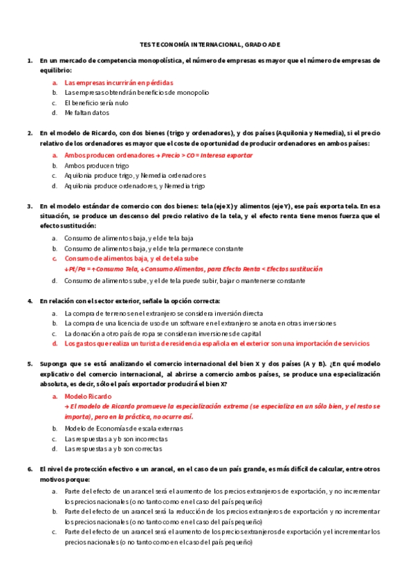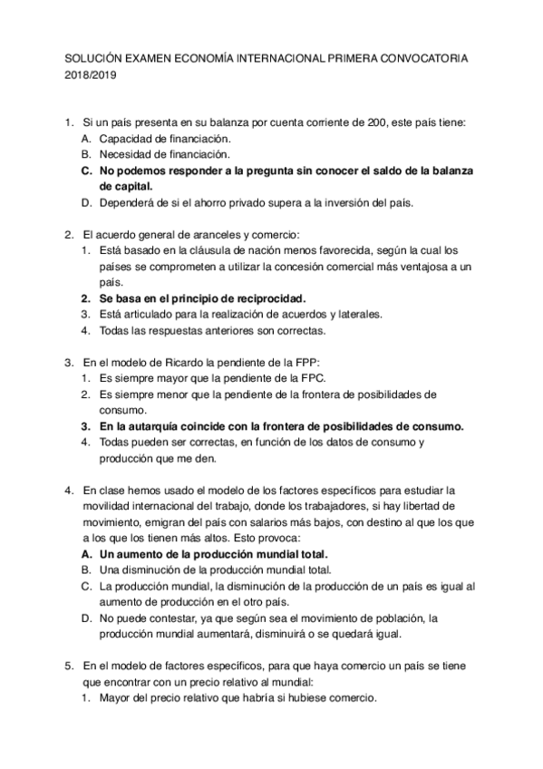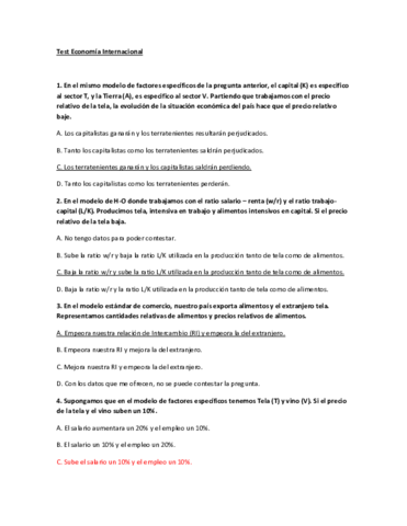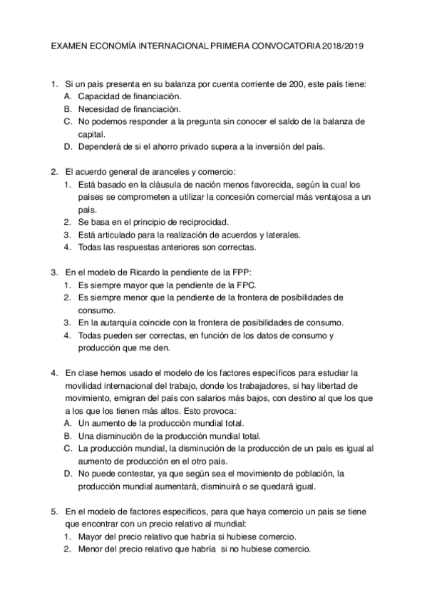 Tipo test Examen, Economía Internacional