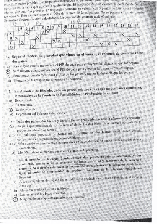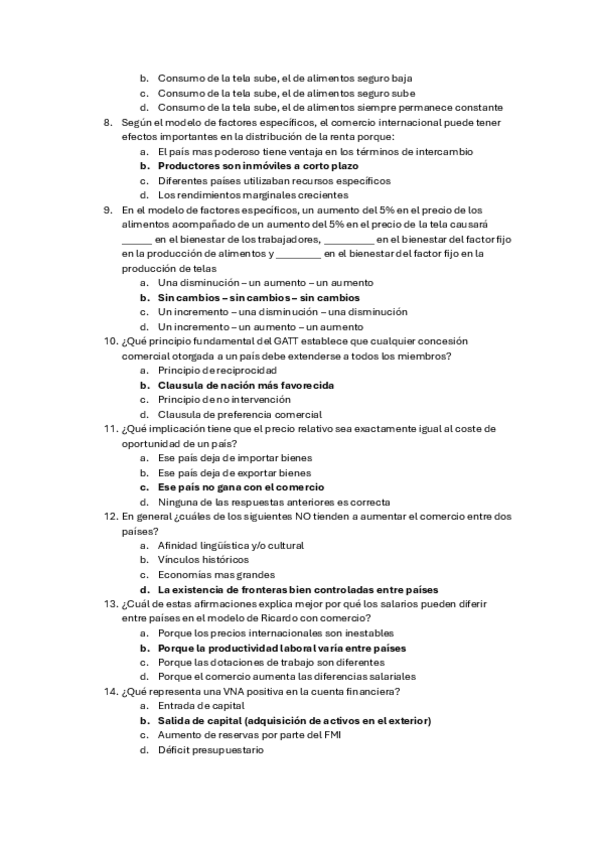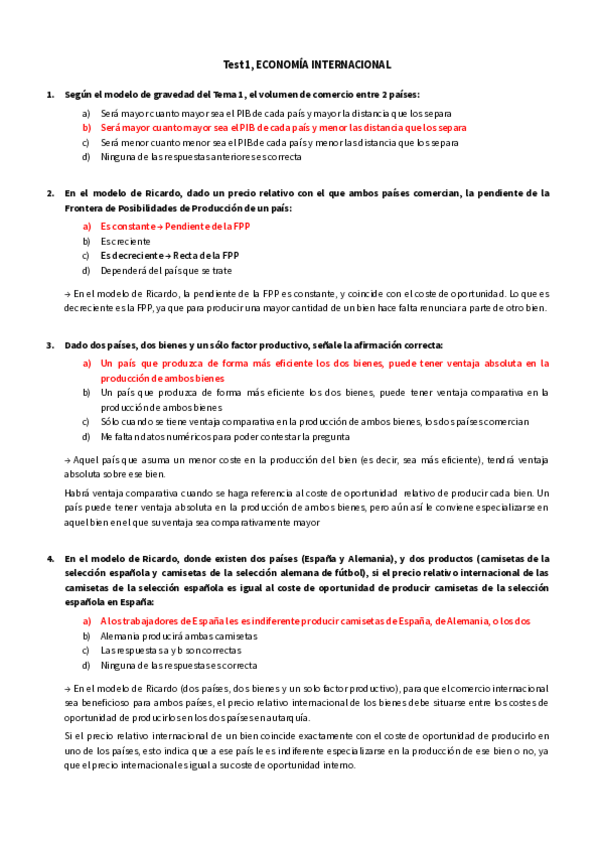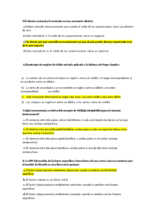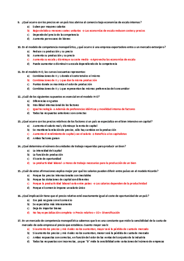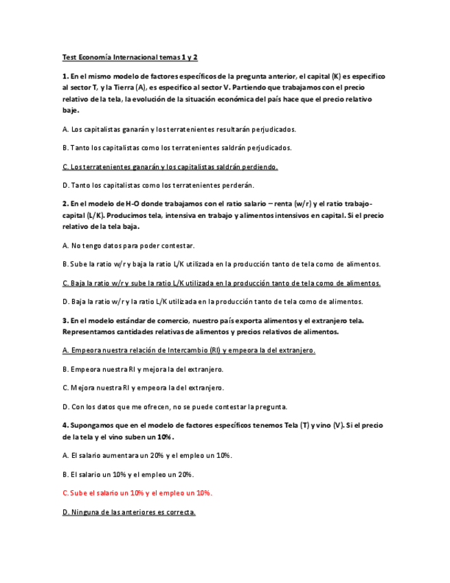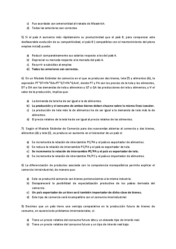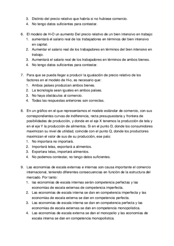 Tipo test Examen, Economía Internacional