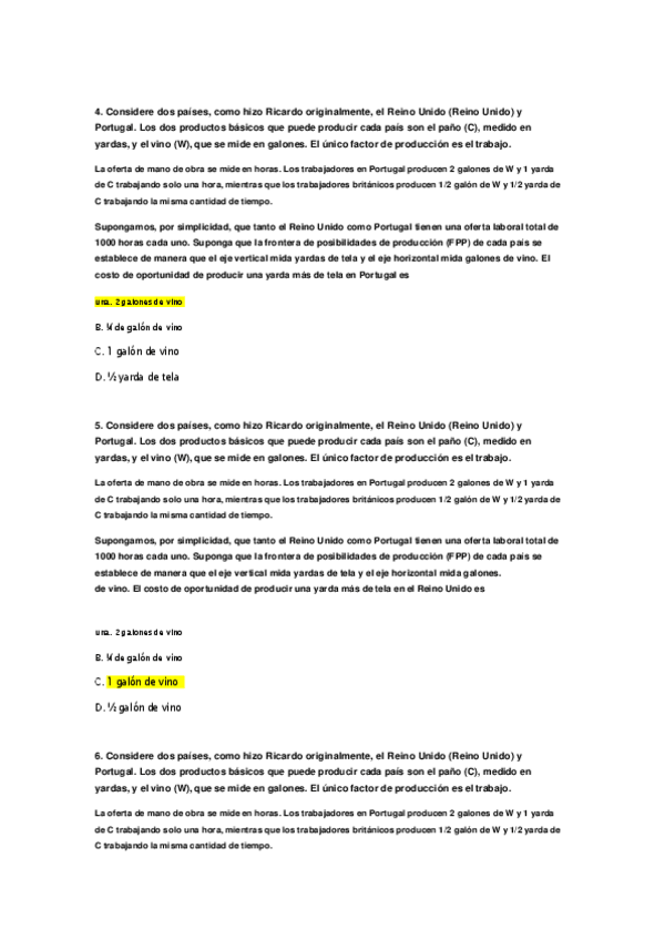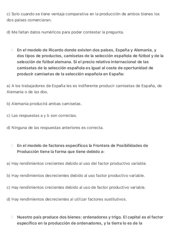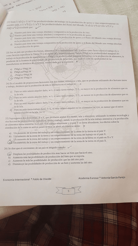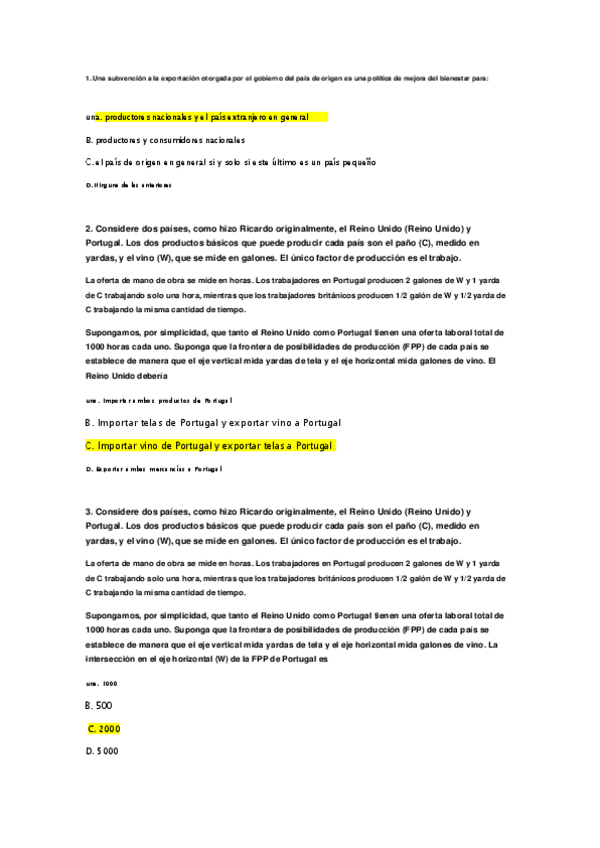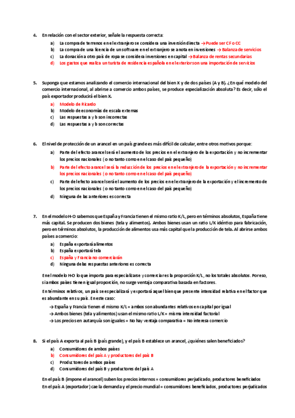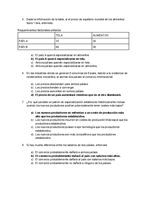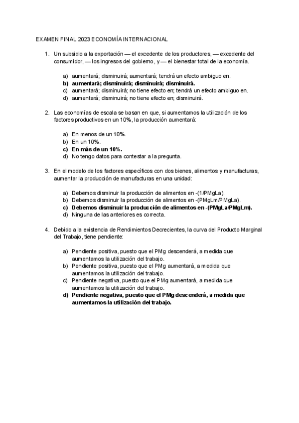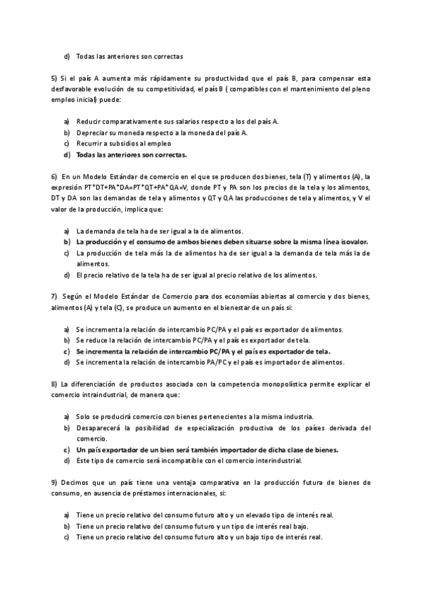 Tipo test Examen, Economía Internacional