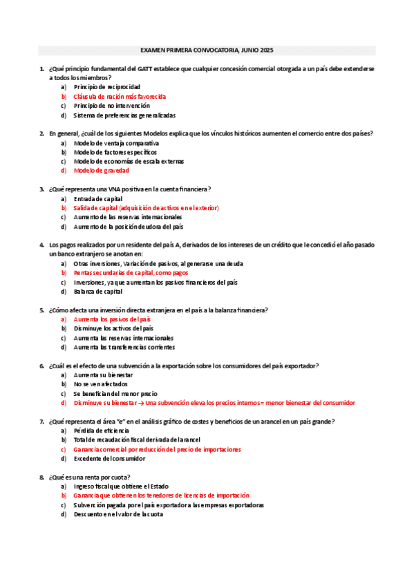 He publicado nuevos examenes de 3º Economía Internacional: Examen convocatoria JUNIO 2025 RESUELTO, Economía Internacional.pdf