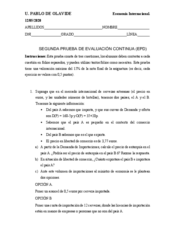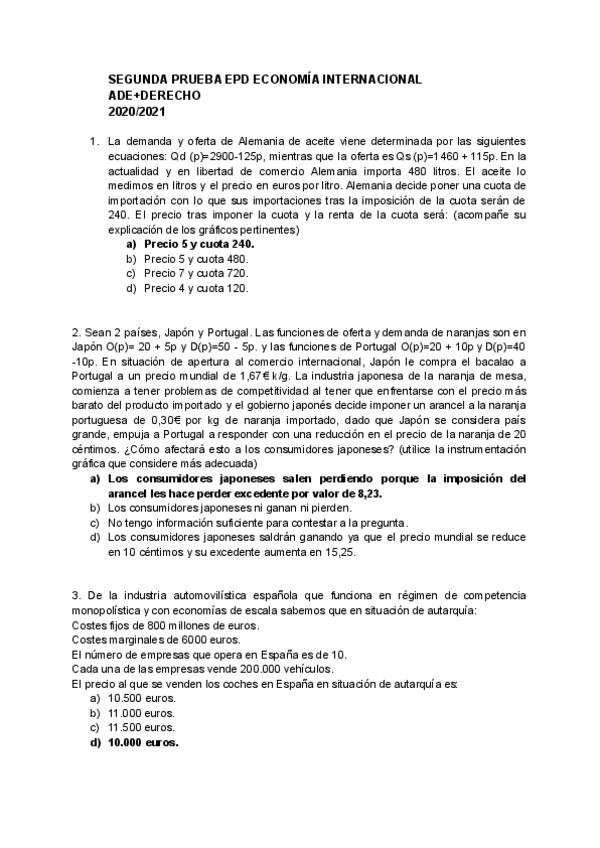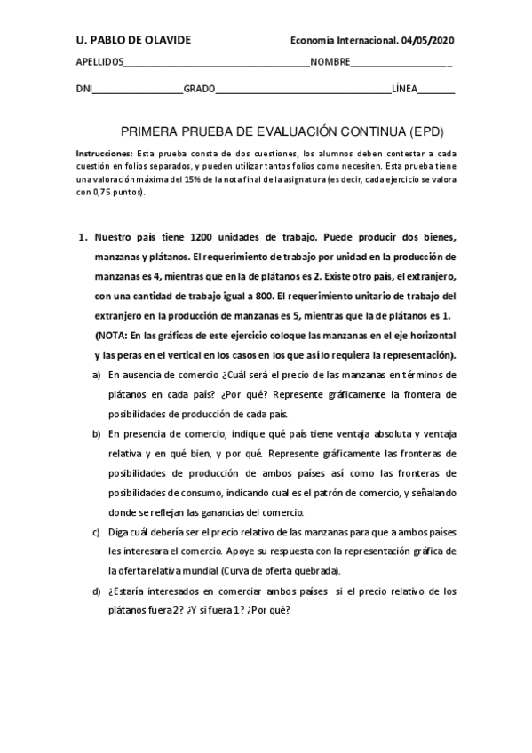 Ejercicios RESUELTOS Epd, Economía Internacional