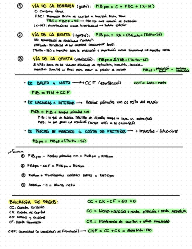 Resumen de Fórmulas de PRINCIPALES AGREGADOS MACROECONÓMICOS DE PRODUCCIÓN, RENTA Y GASTO + BALANZA DE PAGOS para la asignatura de ECONOMÍA MUNDIAL del libro de INDICADORES ECONOMICOS Y FINANCIEROS de J. Requeijo