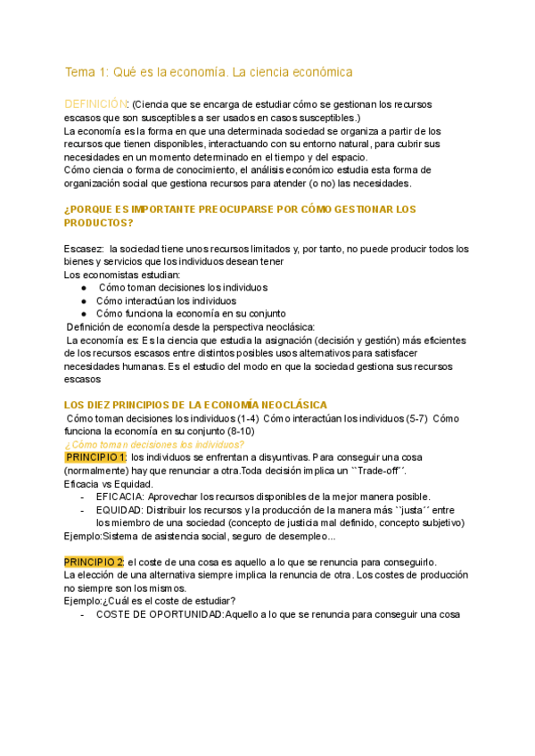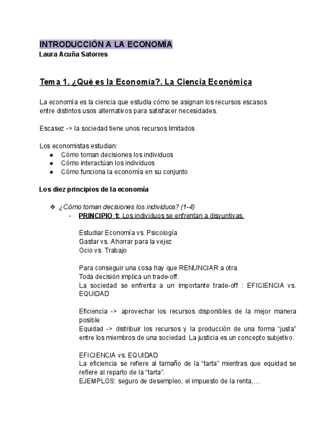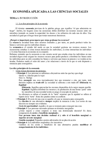 Temas 1- 5 Introducción a la Economía