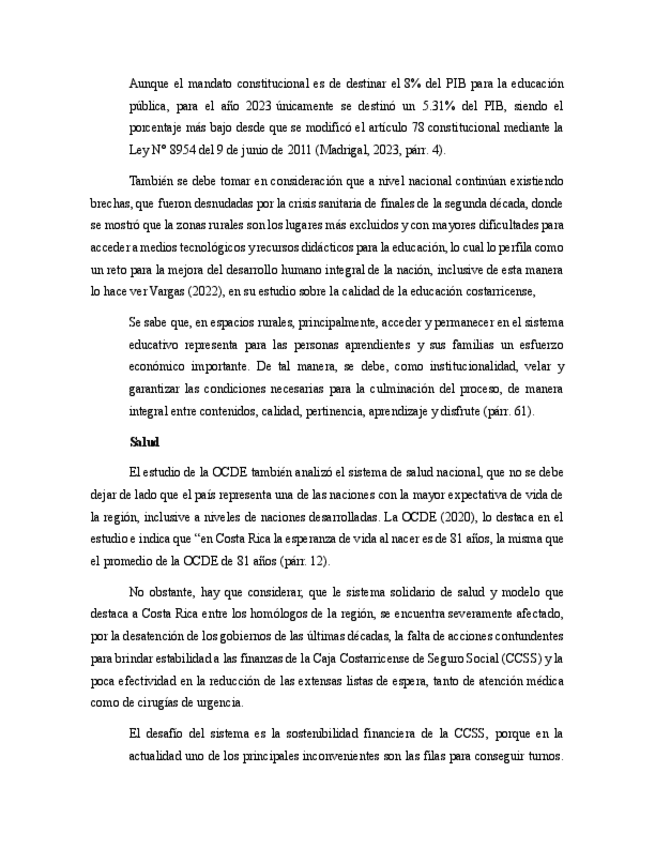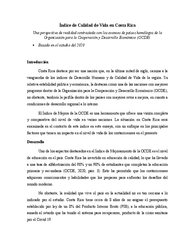 Ensayo sobre el Índice de calidad de vida, basado en el Organización para la Cooperación y Desarrollo Económico (OCDE) de 2020.