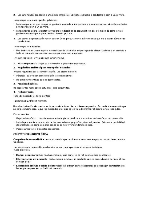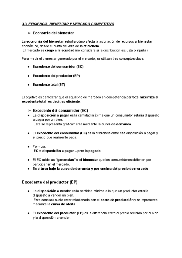 Tema 3.3 Eficiencia Bienestar y mercados competitivos y tema 4 Otras estructuras de mercado: monopolio, competencua monopolistica y oligopolio