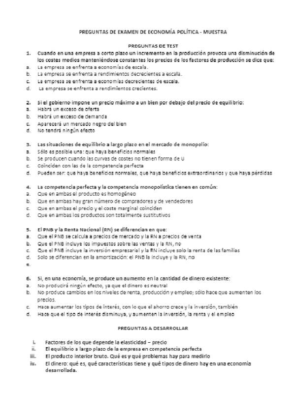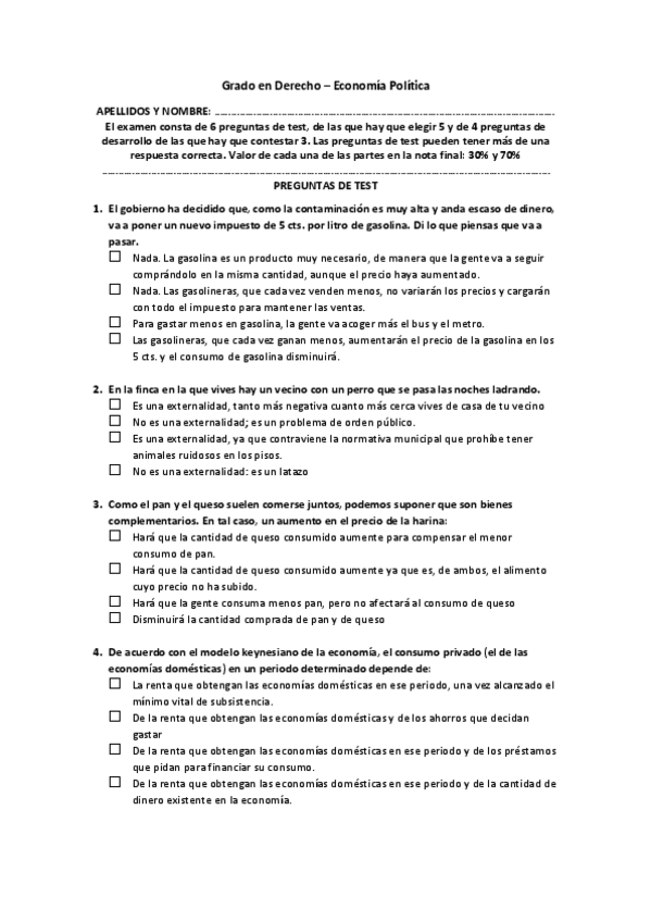 He publicado nuevos examenes de 1º Economía Política: Examen-EP-muestra.pdf