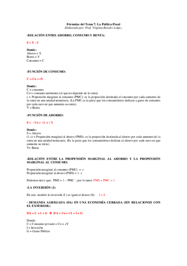FORMULARIOS de ECONOMIA POLITICA