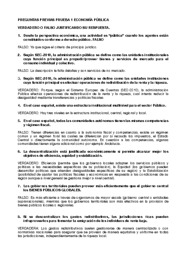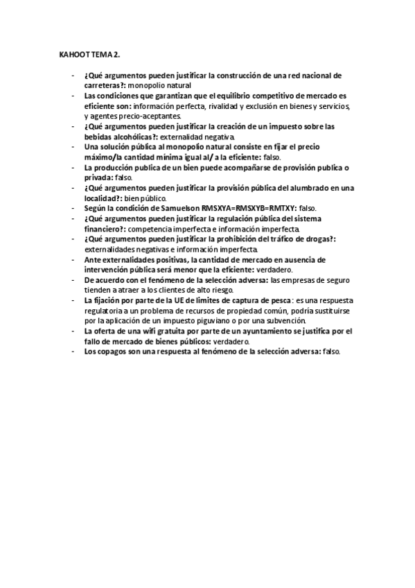 Resumen temas 3, 4, 6 - economía pública + Preguntas justificadas verdadero o falso