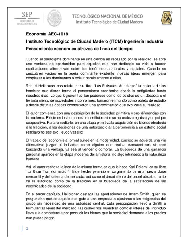 Pensamiento económico atreves de línea del tiempo