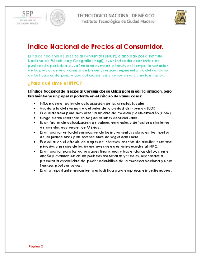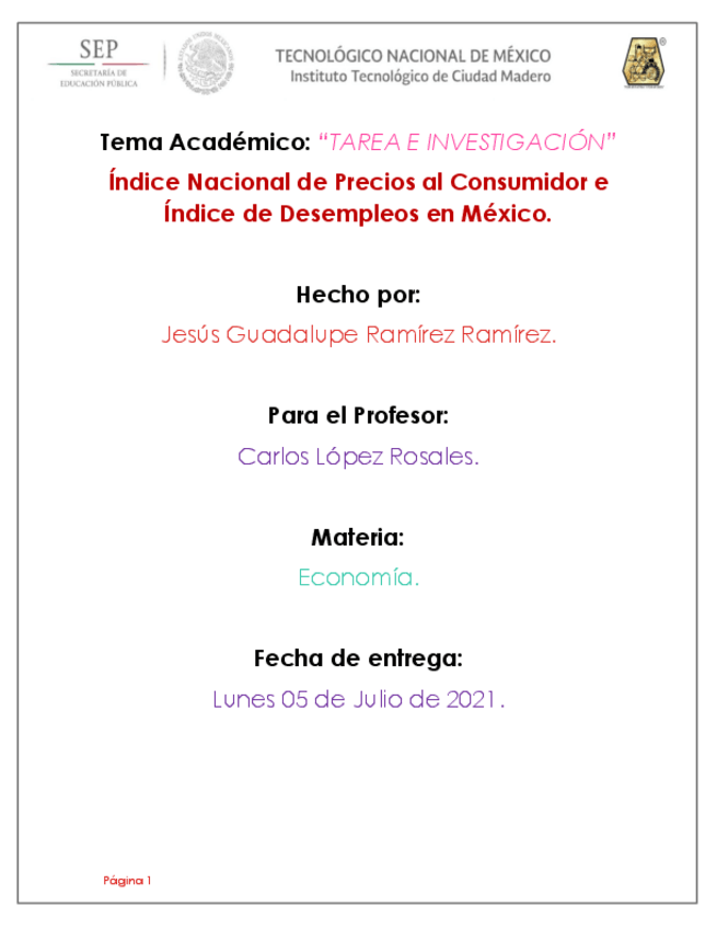 Índice Nacional de Precios al Consumidor e Índice de Desempleos en México