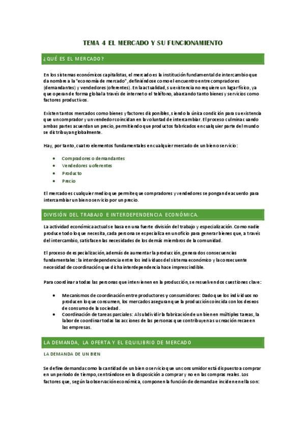 Apuntes economia 1 BACH. El mercado y su funcionamiento.