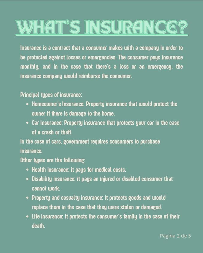 Apuntes en inglés sobre la protección de los seguros. Nivel dual diploma último curso.