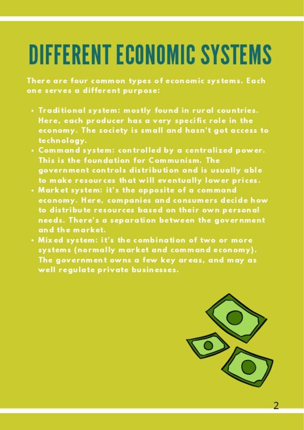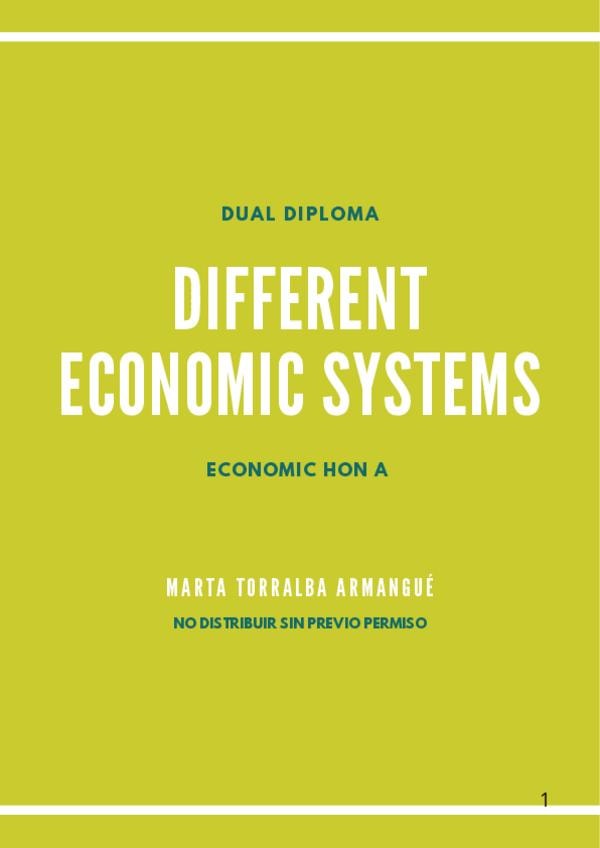 Apuntes sobre los diferentes modelos económicos explicados en inglés. Nivel dual diploma último curso.