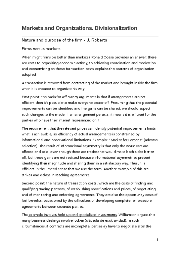 He publicado nuevos apuntes de 2º Economic Institutions And Markets: Nature and purpose of the firm.pdf