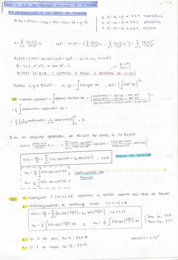 Resumen de los apuntes del Tema 5 - EDPs de 2º orden de EDOS, con ejemplos de cada tipo y de cada método.