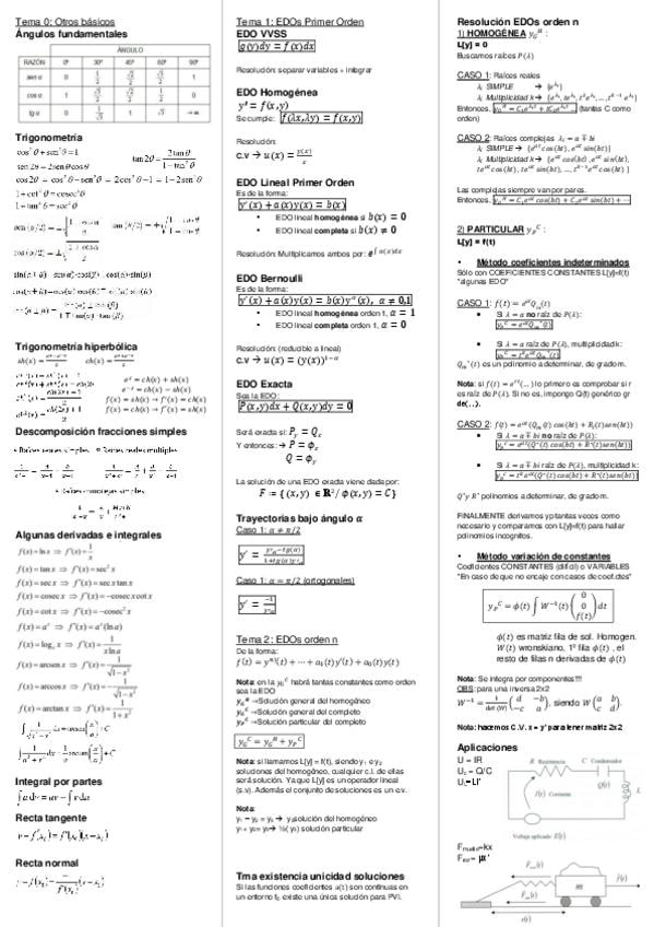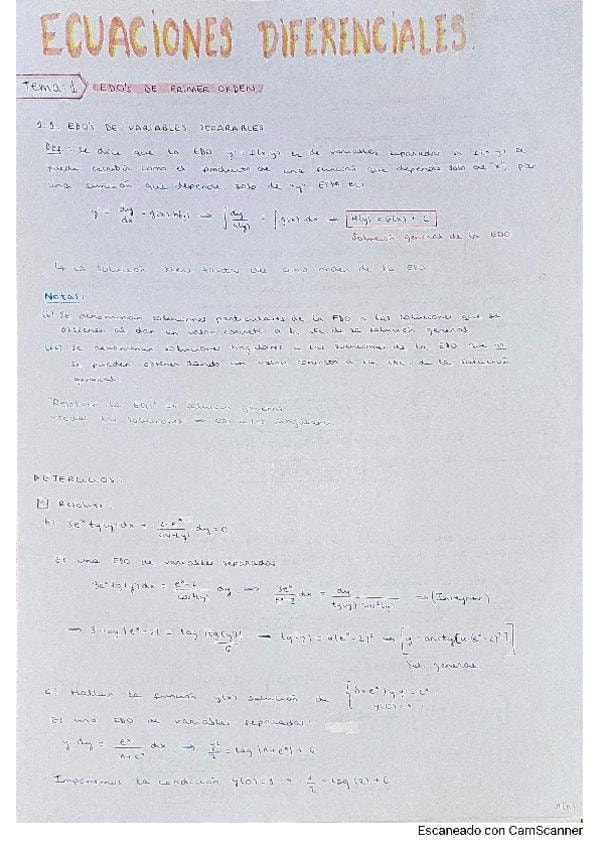 Apuntes y ejercicios de Pape de los siete temas de EDO's, muy desarrollados y con los procedimientos que hay que seguir.