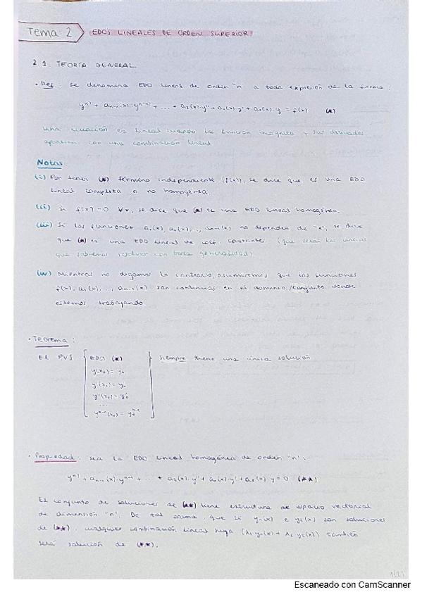 He publicado nuevos apuntes de 2º Ecuaciones Diferenciales: Tema 2