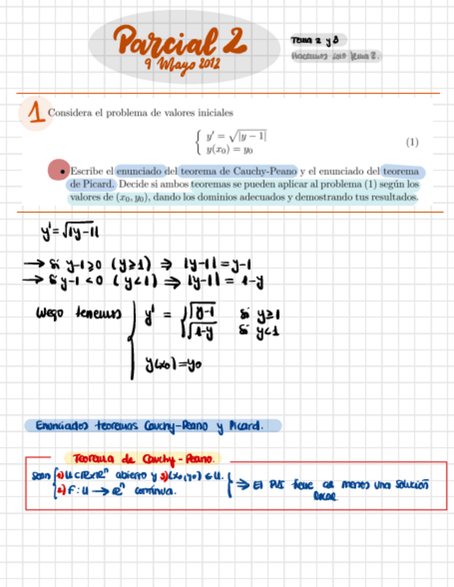 He publicado nuevos examenes de 2º Ecuaciones Diferenciales I: Parcial 1