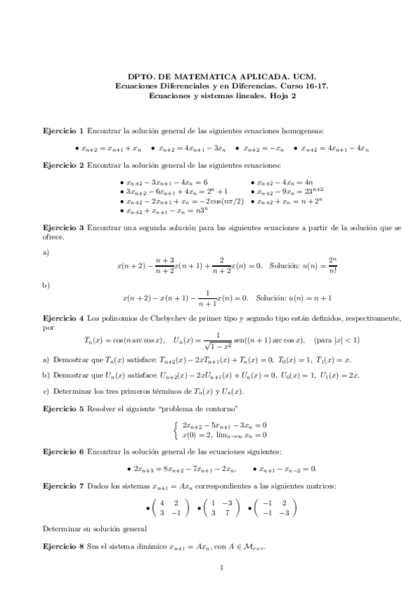 He publicado nuevos ejercicios de 3º Ecuaciones Diferenciales y Ecuaciones en Diferencias: 0_Hoja 1 ECDIF.pdf