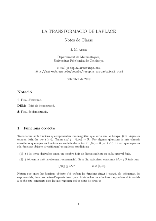 He publicado nuevos apuntes de 1º Ecuaciones Diferenciales y Transformadas: apunts.classe-Laplace.pdf