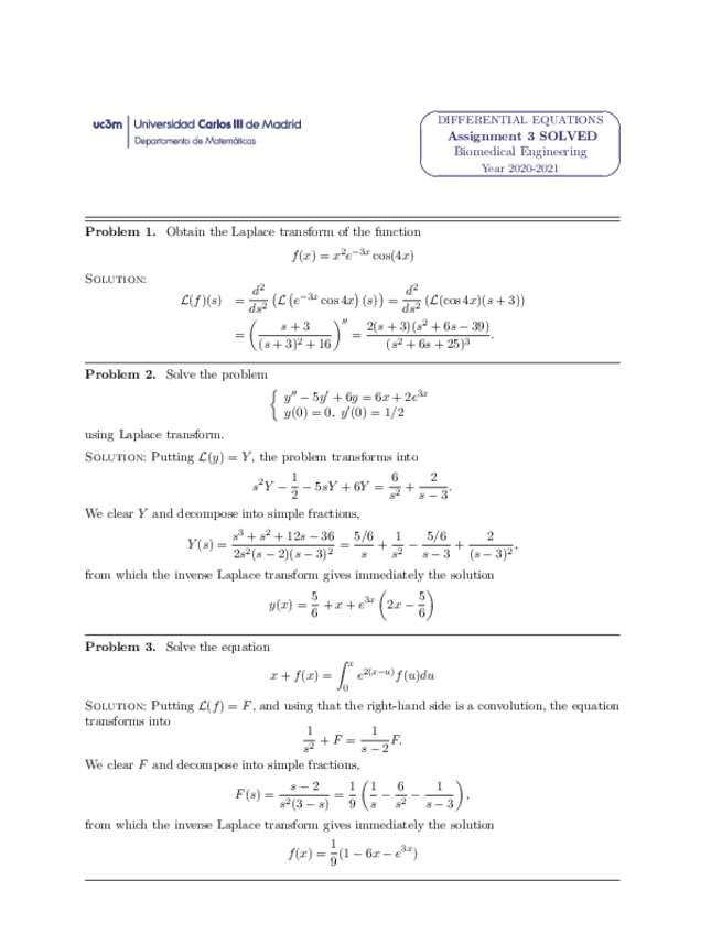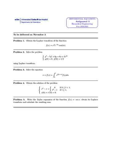 He publicado nuevos ejercicios de 2º Ecuaciones Diferenciales: ENTREGA 3 (TASK 3) 2020-2021