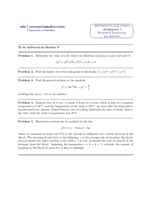 He publicado nuevos ejercicios de 2º Ecuaciones Diferenciales: ENTREGA 1 (TASK 1) 2020-2021
